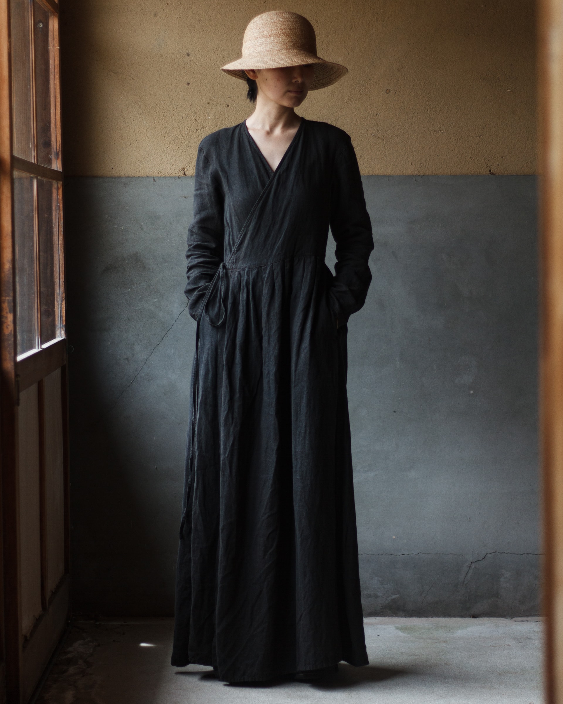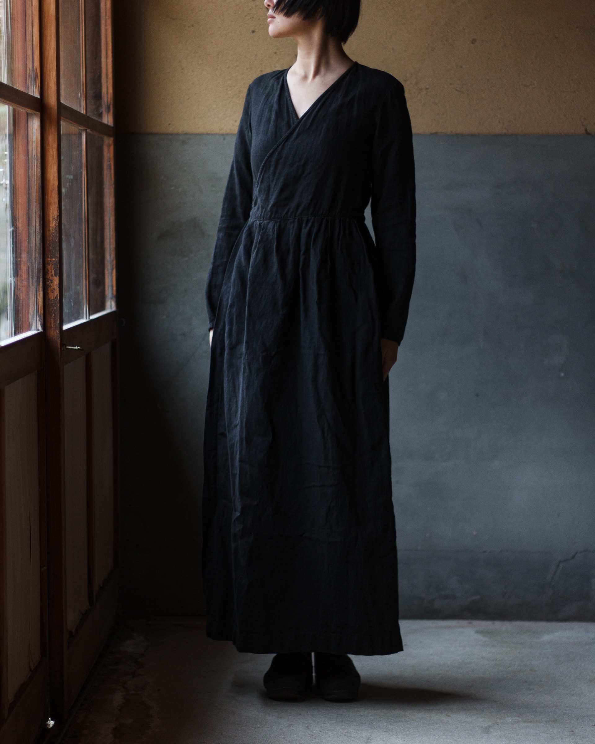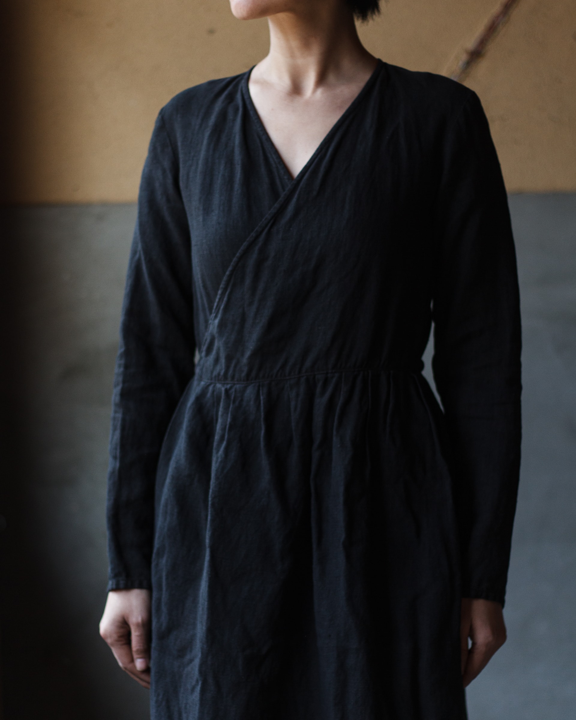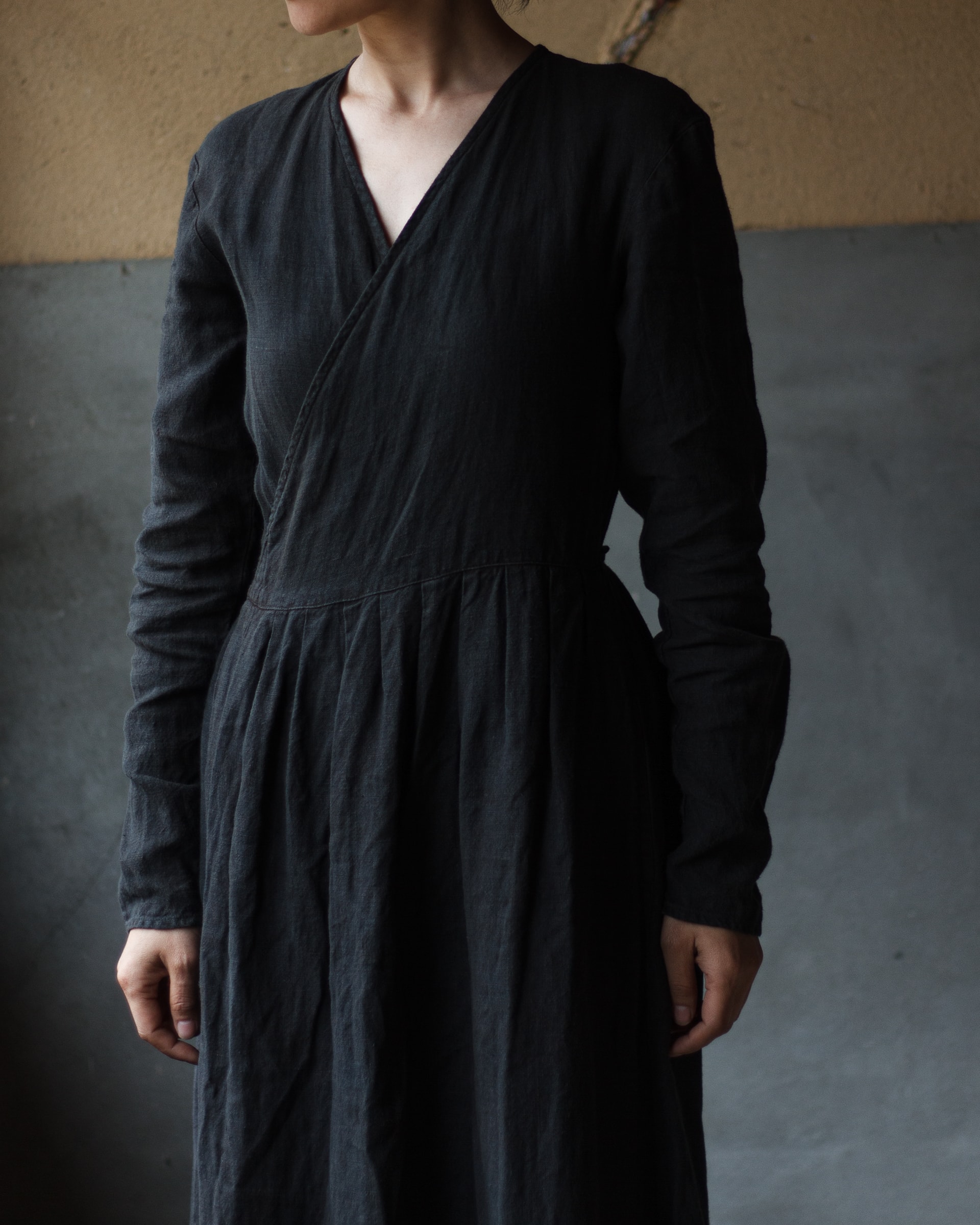 つきのねカシュクールワンピース(藍泥染め : 黒)
