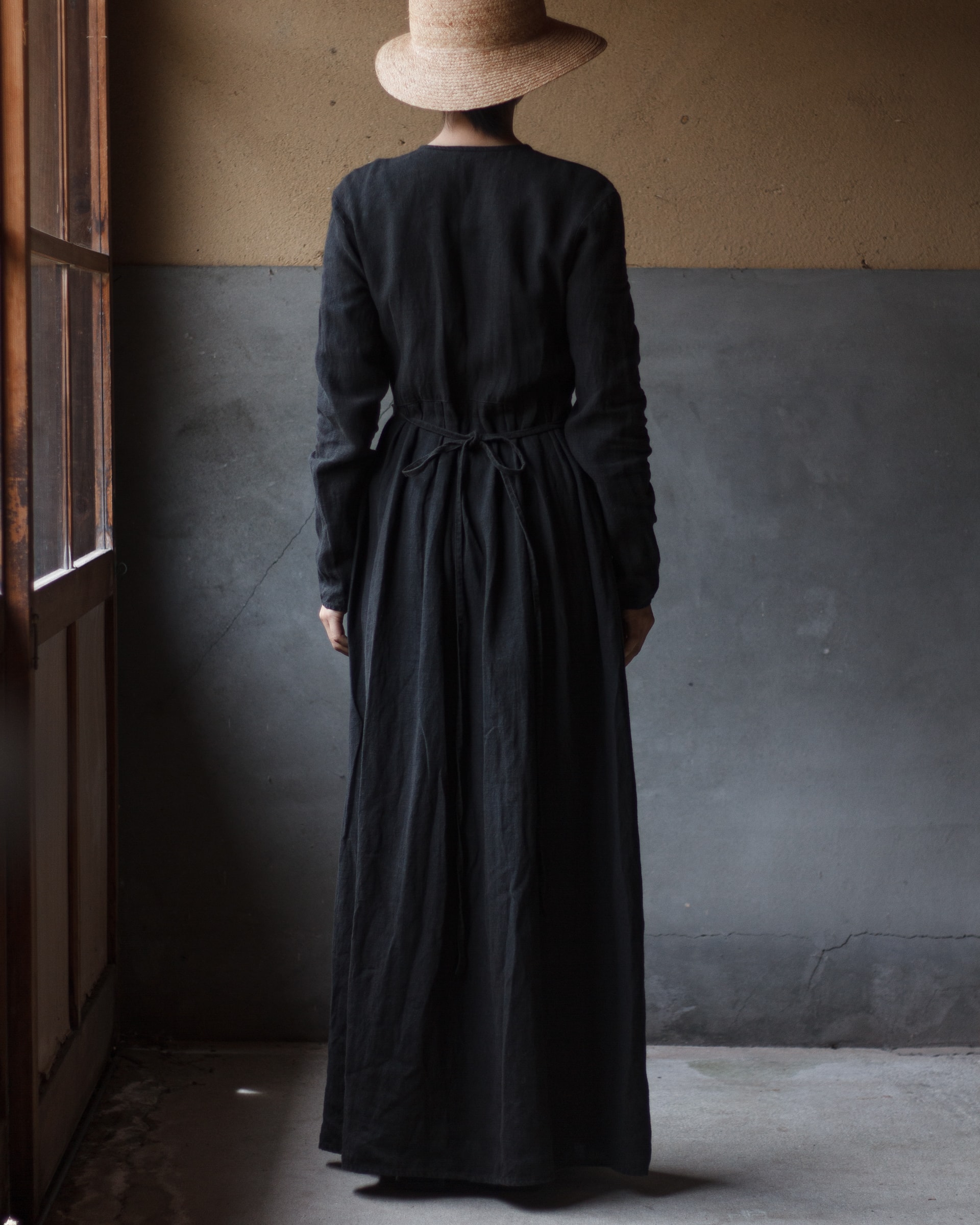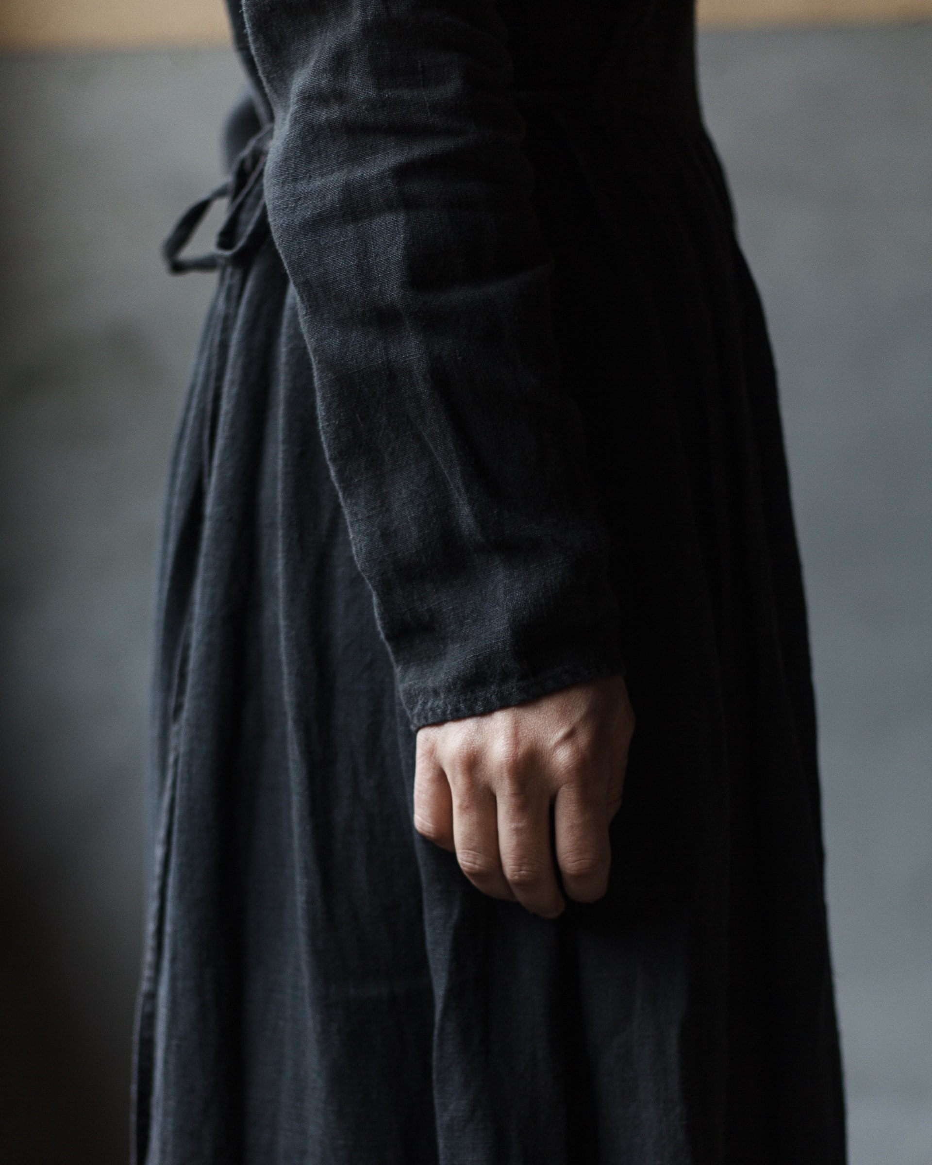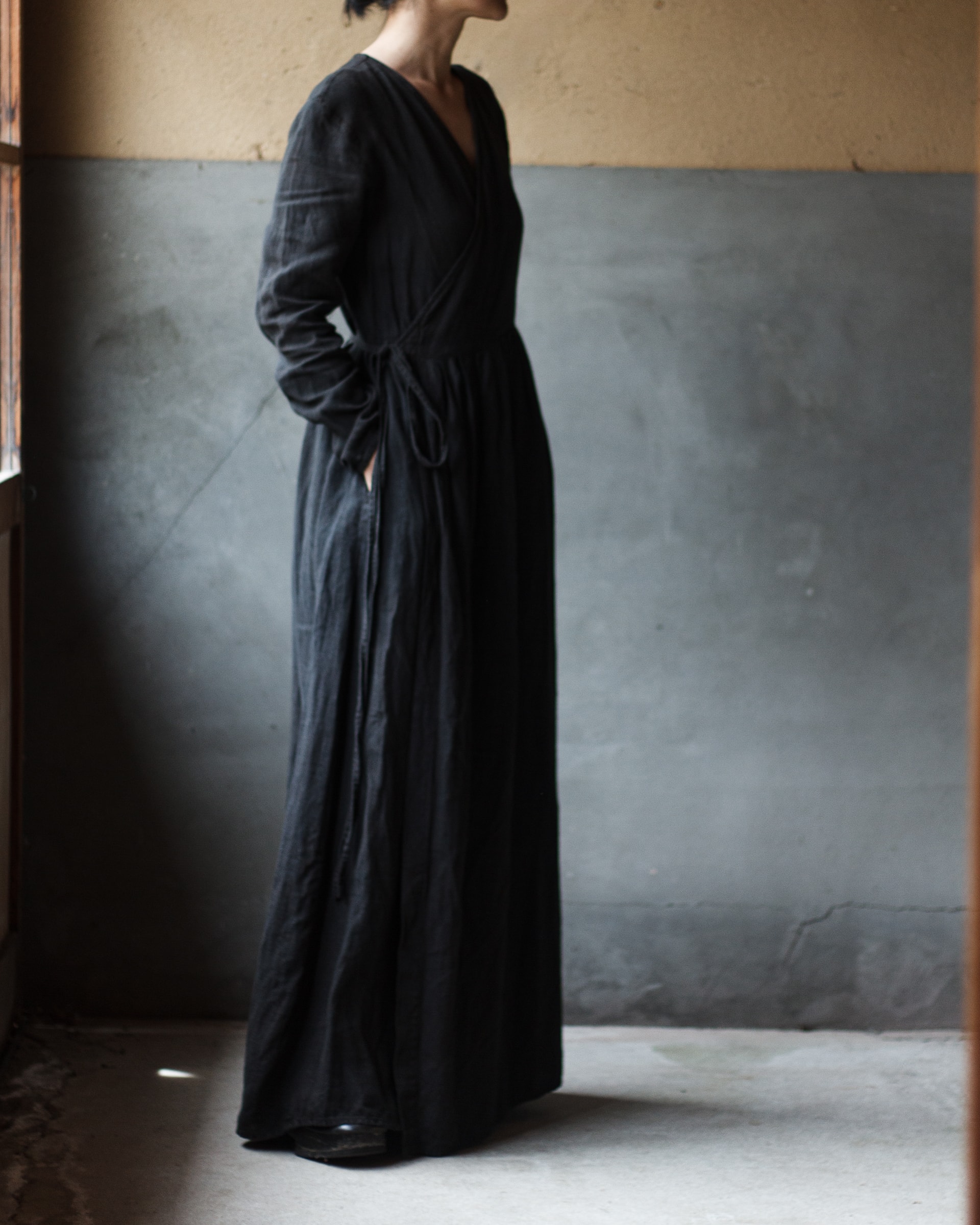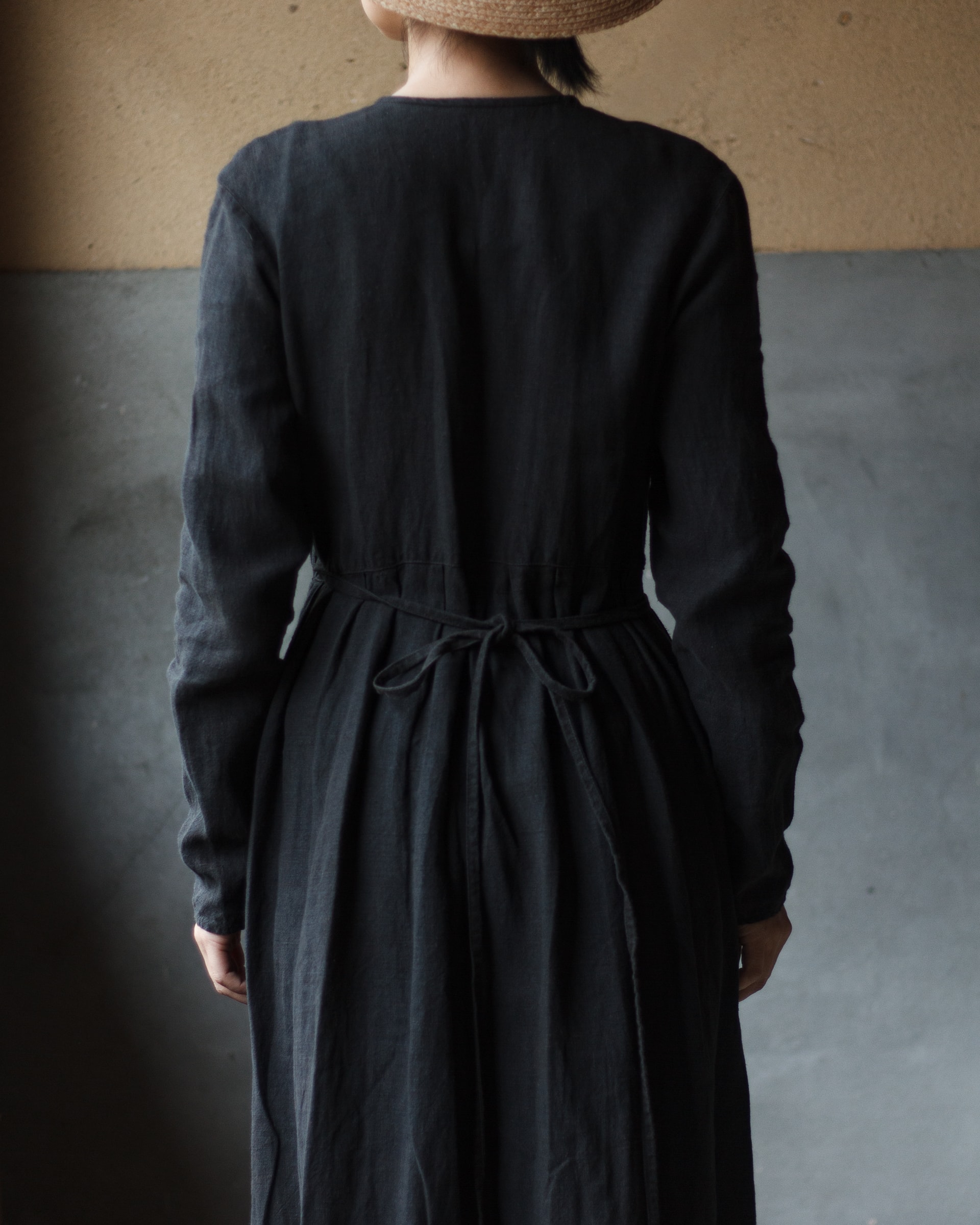 つきのねカシュクールワンピース(藍泥染め : 黒)