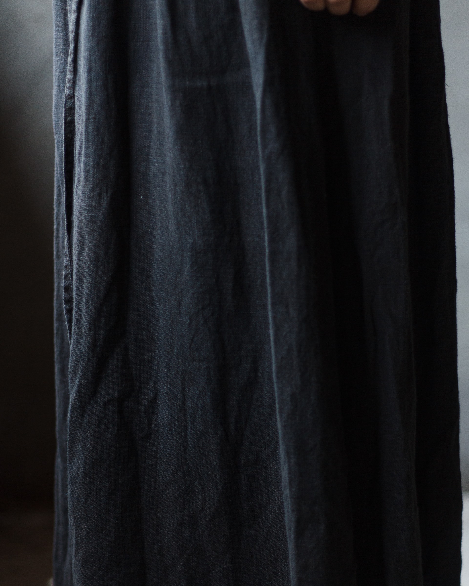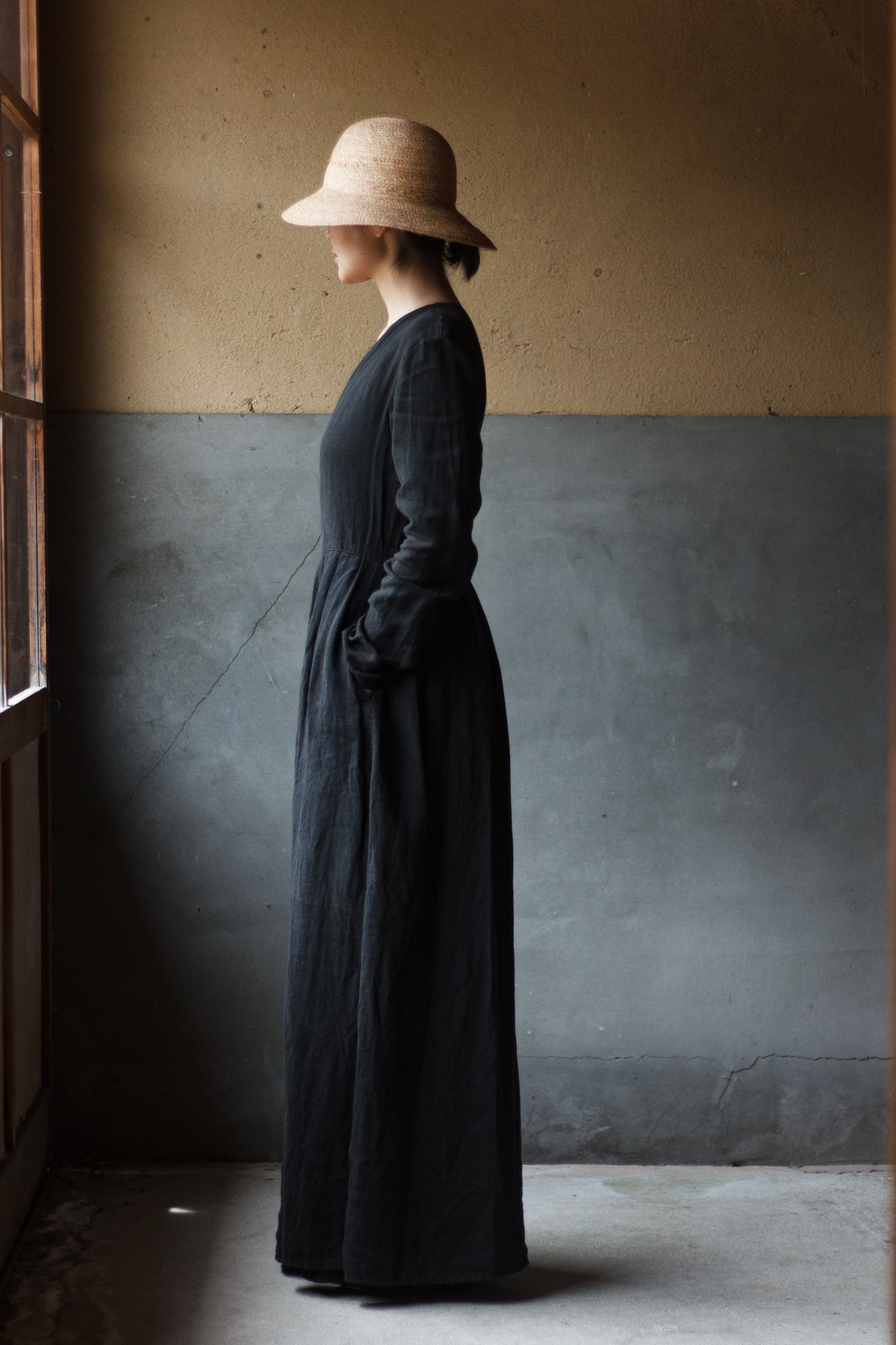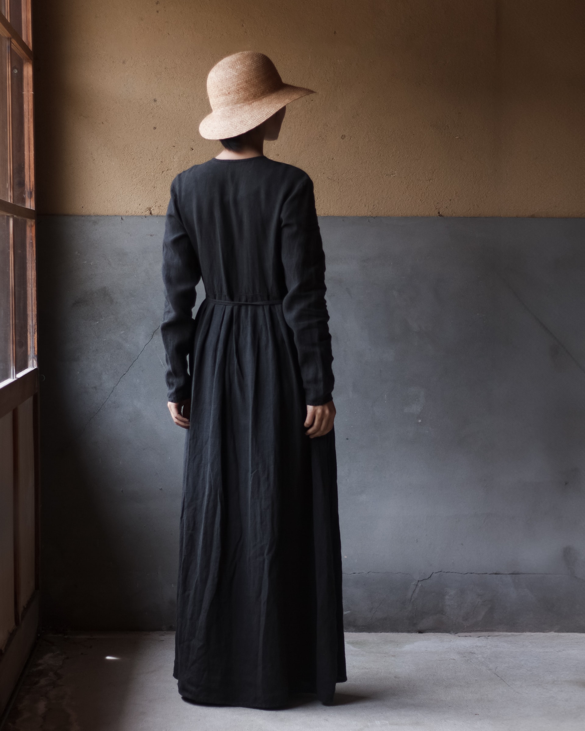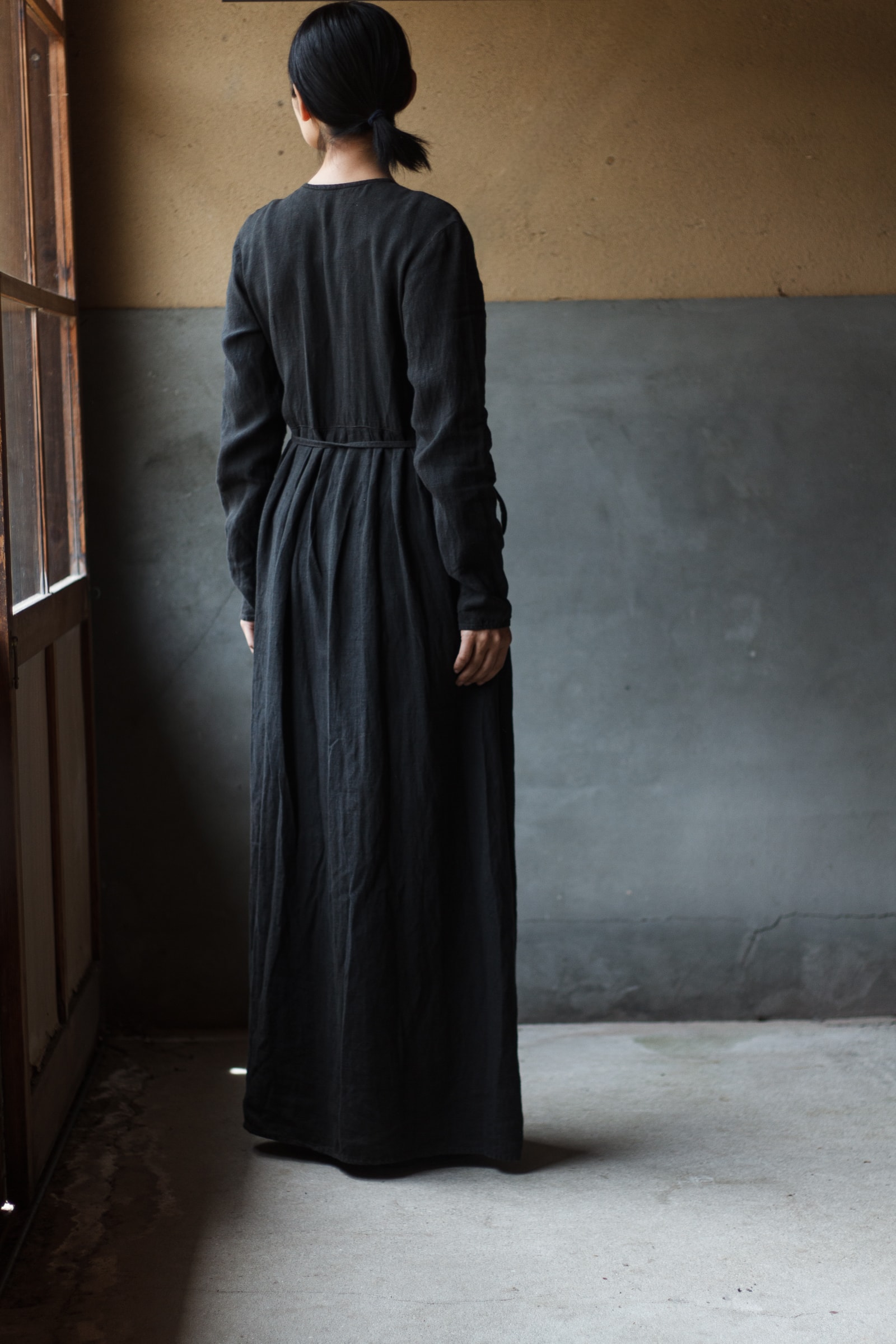 つきのねカシュクールワンピース(藍泥染め : 黒)
