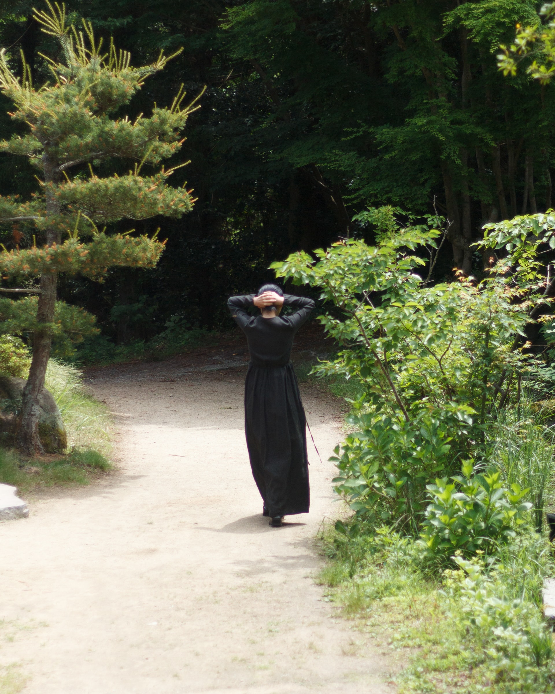 この形は 神社など奉納の舞をされている中野妙香さん(agréable*musée オーナー)が、舞をされる際にも着用できるよう、製作した衣。