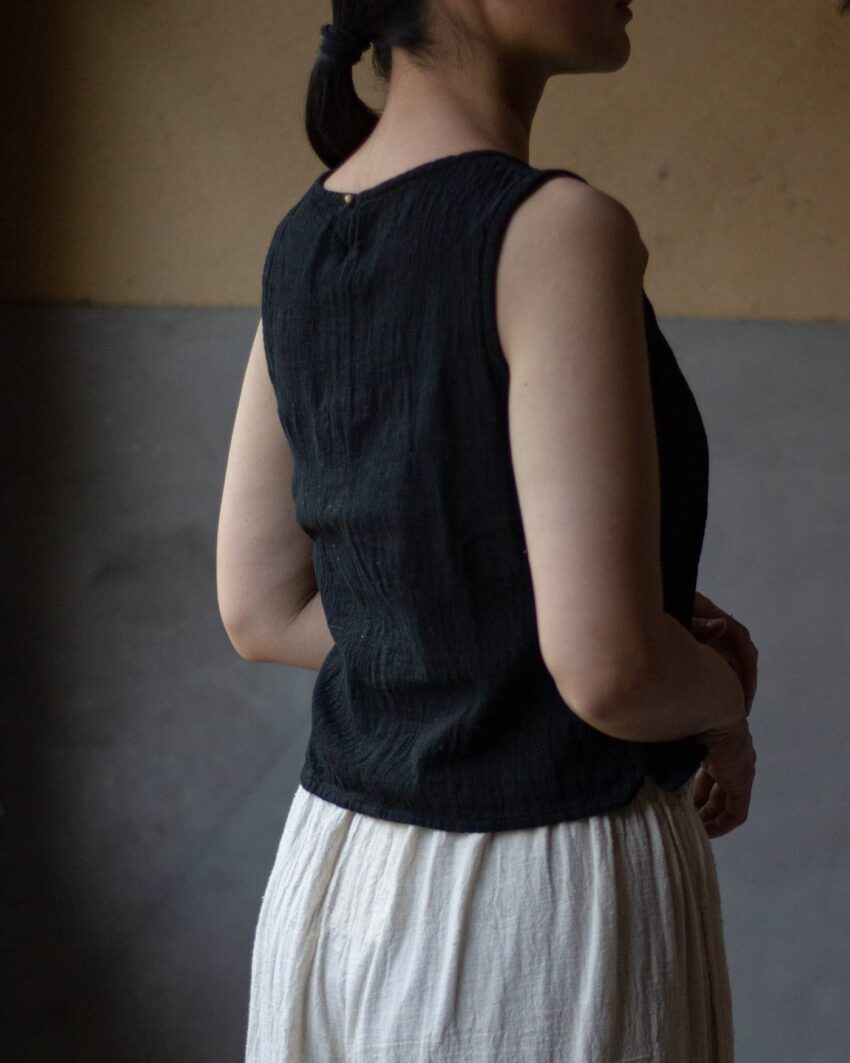 涼しさとラフさを求めた風のブラウス(ボタン付き)。