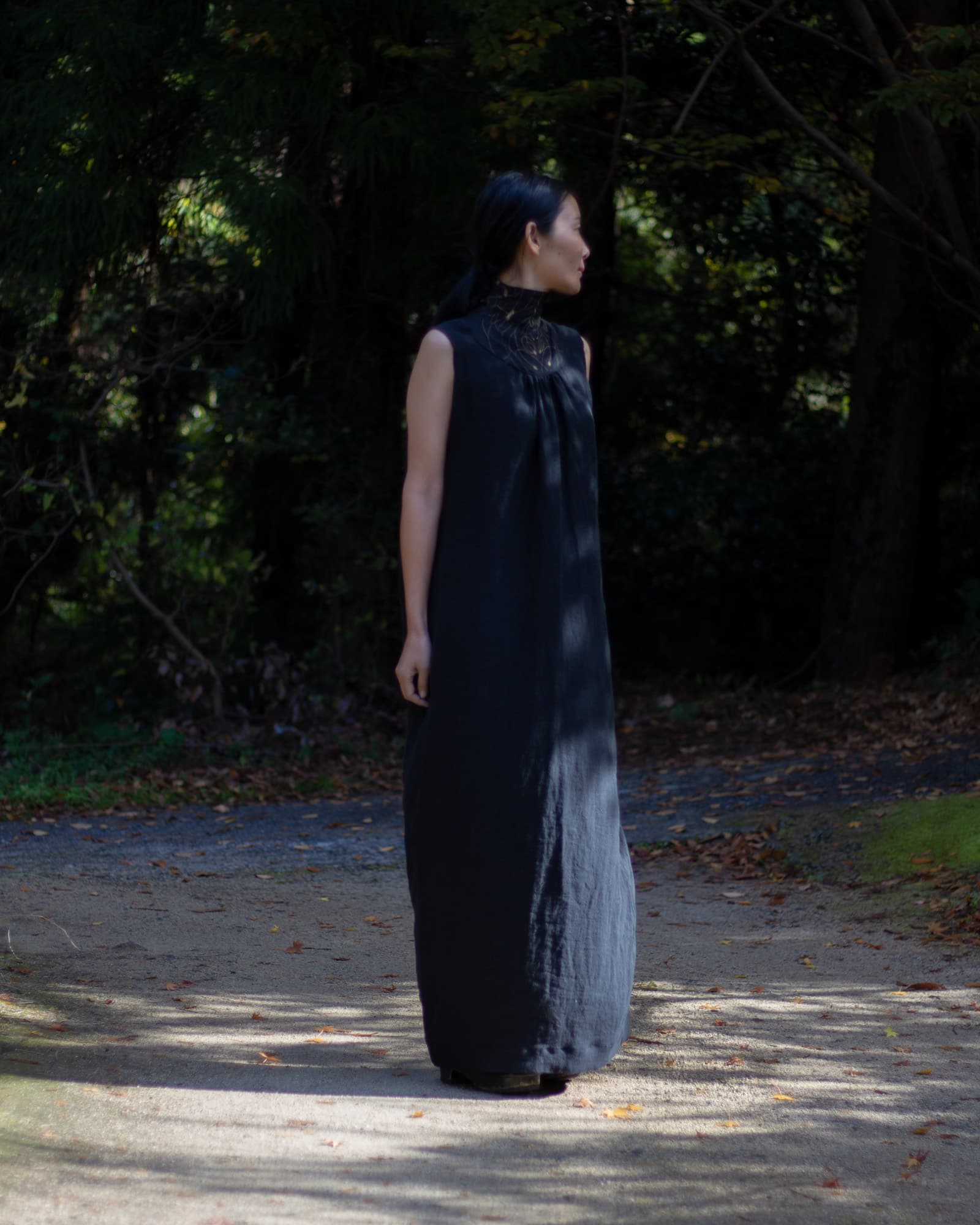 首元から股下まで、ボタンで留める仕様になっていますが、隠れているため着用中は見えません。